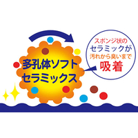 ソフトセラミックスが汚れを吸着し、重曹と純せっけん成分が洗浄を助け汚れを落とします。普段のお掃除では落ちにくかった浴用・浴室用品の石けんカス・湯あか・水あか落としに。湿らせた雑巾やスポンジ等に適量をつけて、汚れ部分を擦り取るようにしてから水で洗い流してください。やわらかいペースト状です。