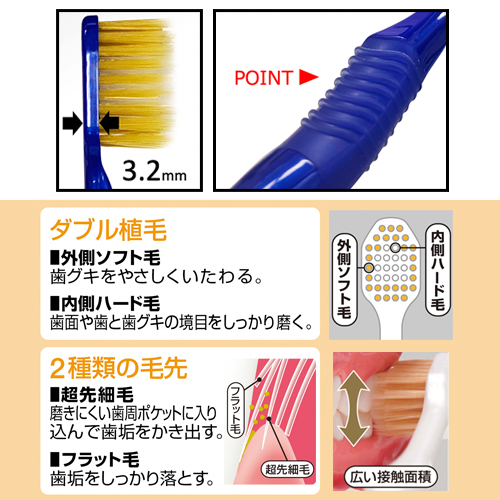 48の穴数で、植毛量が多く、いつものブラッシングで効率よく歯垢を除去します。