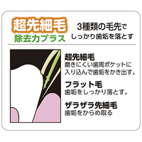 48の穴数で、植毛量が多く、いつものブラッシングで効率よく歯垢を除去します。毛の一部にはひまし油由来の原料を、柄にはサトウキビ由来の原料を使用。