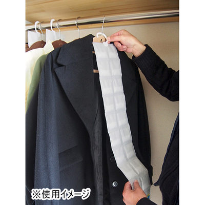 ●除湿シート:B形シリカゲル・ポリエステル不織布、ハンガー:ポリプロピレン●13×77cm(ハンガー含む)、除湿シート部長さ:13×72cm●87g●1枚あたりの吸湿量:43ml●取り換え目安:約6か月●3枚組●使用目安:230×180×60cmのクローゼット2枚●日本製