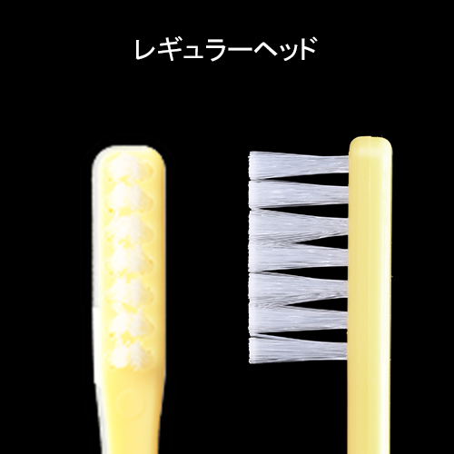 いままで歯間ブラシでなければ磨けなかった歯のすき間までしっかり磨ける!歯間に入りやすい2列V型植毛で、磨きにくいところもまんべんなく磨けます。レギュラーヘッドと、口の小さい女性にも磨きやすいコンパクトヘッドの2種。通常の歯ブラシとしても使えます。毛のかたさはふつう。