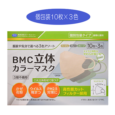 トップ > 日用品・衛生雑貨 > マスク > BMC立体カラーマスク 30枚