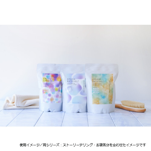 ミネラルを多く含んだエプソムソルト(硫酸マグネシウム)をメインにエッセンシャルオイル・天然クレイ(ベントナイト※吸着成分)を配合した入浴料。入浴により体を温め、肌を柔らげしっとりなめらかに整えます。フローラル&ハーバルの香り。計量用のスプーン付きです。