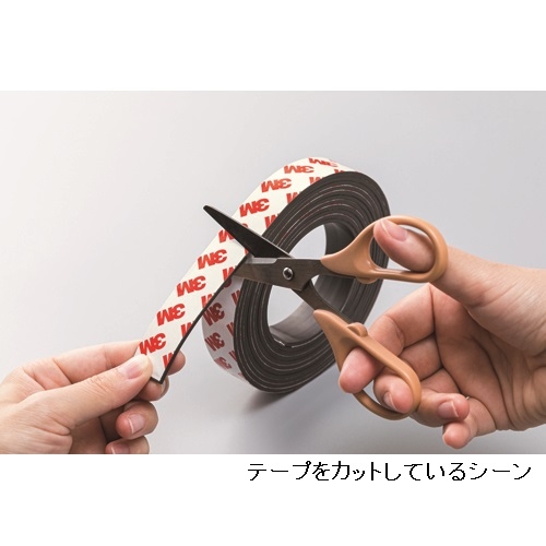 貼り付け自在のマグネットテープです。好きな長さにカットして、粘着テープで貼り付けするだけ。洗面所やキッチンのスチール面にピタッと貼り付きます。
