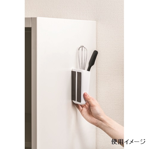 対象品に貼るだけで、キッチンや洗面所のスチール面にピタッと簡単にくっつけることができる。