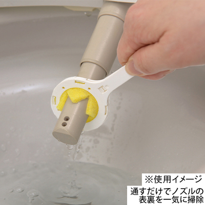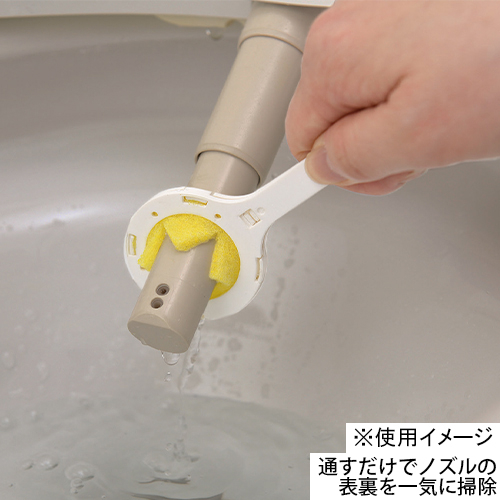 トイレノズルに通すだけでノズル表裏が一気に掃除できる円形クリーナーです。