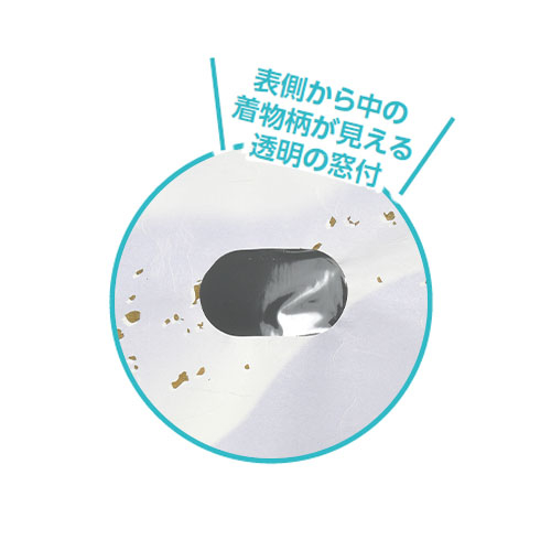 たとう紙は「文庫紙」とも呼ばれ、きものや帯をしまう時に包む紙です。中身の見える窓付き。結びやすい平紐タイプです。