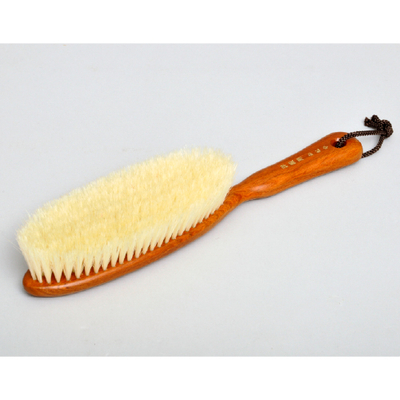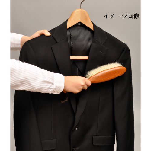 普段の洋服をしっかりブラッシング。ほどよい硬さで使いやすい。ひも付きなので、掛けて収納できます。