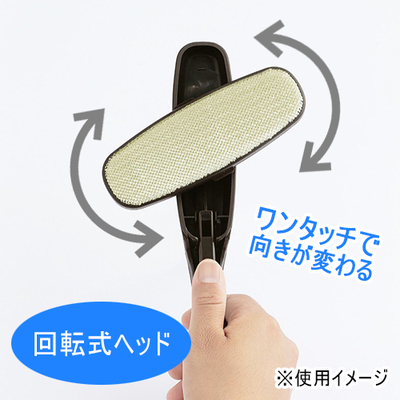 レバーを軽く押さえて離すとブラシ面が180°回転するので、動かしやすい向きでお手入れできます。ブラシを動かす方向を示すマークが付いているので、方向を誤ってホコリを付着させるミスが防げます。