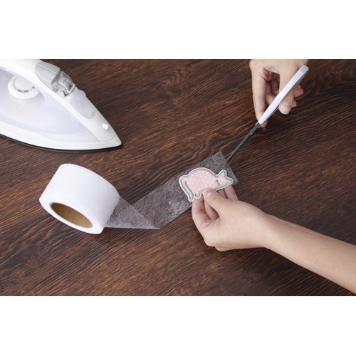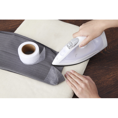 アイロンを当てるだけで、衣類等を接着できるテープです。ズボンのすそ上げやゼッケン等の貼り付け、鞄等へのアップリケの取り付けなどの際に、裁縫を使わずに簡単に取り付けることが出来ます。接着語、洗濯可能です。