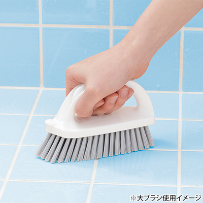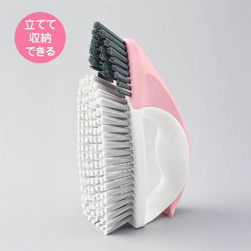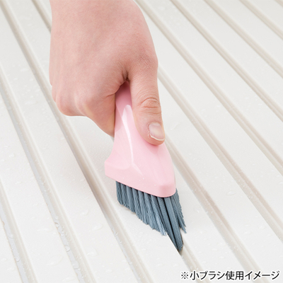 浴室の床などの広い面や、浴槽のフタのすき間、排水溝などの狭いところの掃除に便利な大小ブラシのセット。2つのブラシをドッキングさせて、立てて置けるので、水切れがよくコンパクトに収納できます。