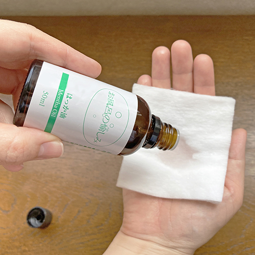 爽やかな香りが愉しめる、はっかの精油。2滴ずつ出せる便利なドロッパーつき。手作り石けんの香り付けのほか、自家製クレンザーや、リビング、収納棚、キッチン、玄関などで使う自家製芳香剤や消臭剤の材料としてお使いください。