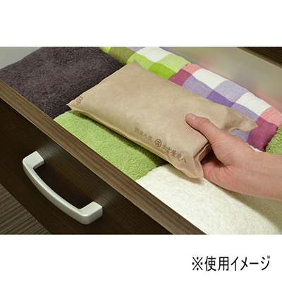 木炭を不織布で包んだ調湿材。タンスや下駄箱などへの使用がおすすめです。「炭八」は家屋の解体時に出る良質な木材等を再利用(リサイクル)して作られたシリーズです。