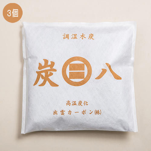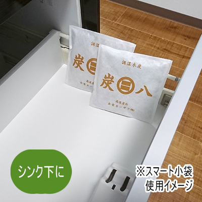木炭を不織布で包んだ調湿材。下駄箱や衣装ケースなどへの使用がおすすめです。「炭八」は家屋の解体時に出る良質な木材等を再利用(リサイクル)して作られたシリーズです。