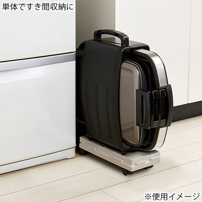 ●本体:ポリプロピレン、キャスター:ナイロン、鉄●幅31.2×奥行14.6×高さ7cm●耐荷重:20kg●付属品:キャスター4個(ストッパー付き2個)●日本製 ※13サイズを連結するときは、内側のキャスターが回転時に干渉するため、上から連結する側のキャスターを取り外してください。