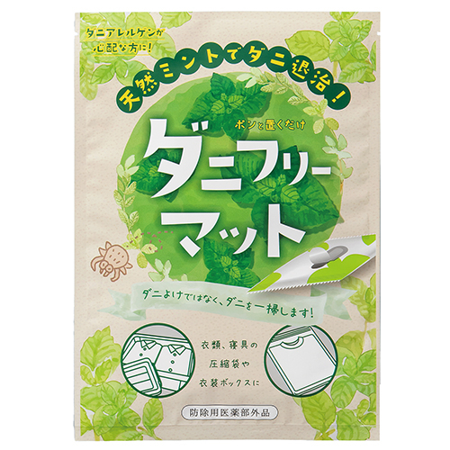 ダニの増殖を抑制し、ダニを駆除します。ダニアレルゲンが心配な方におすすめ。ダニよけではなく、ダニを一掃します。衣類、寝具の圧縮袋や衣装ボックスに