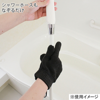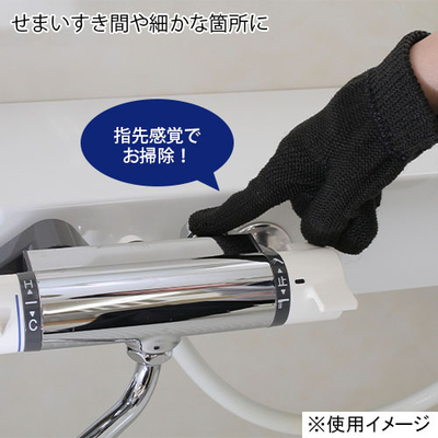 3つ指に分かれた手袋型のたわし。水だけで汚れを落とす素材で、手の平で広い面、細かな部分は指先で掃除できる便利なアイテム。ゴム手袋の上からも着けられます。