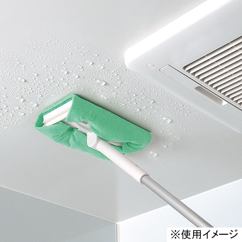 から拭き・水拭きどちらでも使用できます。フローリングワイパーなどに取り付ければ、浴室天井などの高い場所の水滴にも。お好きなサイズにカットして使用できます。洗濯して繰り返し使用できます。