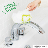 天井までラクラク届くロングタイプ。円形のヘッド形状が洗いにくい浴槽コーナーにもぴったりフィット。カランまわりや天井のスミまで届いて、汚れやぬめりをスッキリかきとります。フタの溝にも入り込みます。ヘッドを外してハンディータイプとしても使えます。