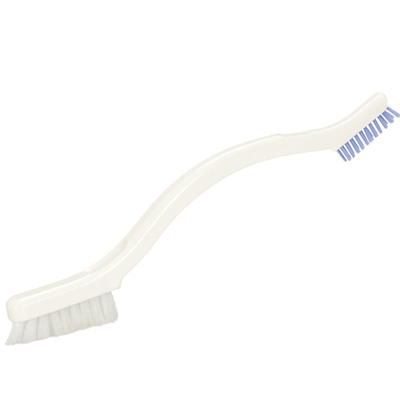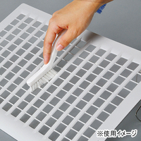 大きいブラシは毛が柔らかく、フィルターを傷めにくくホコリをからめ取り、小さめブラシは毛が硬くこびりついた汚れをかき出します。1本2役と使い分けが1本で出来て便利です。力が入れやすい指あて付きです。グリップは使いやすいように湾曲されています。