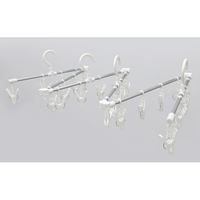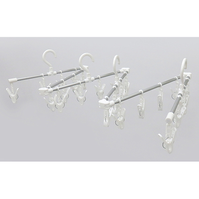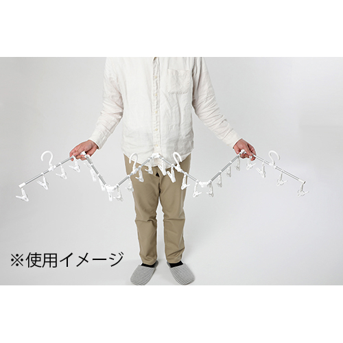 ●フック部・ジョイント部・ピンチ:ポリプロピレン、フレーム:アルミニウム合金、バネ:鋼線、ネジ:スチール(めっき)●幅206×奥行1.7×高19cm(展開時)、幅10.5×奥行34.3×高19cm(折りたたみ時)●380g●使用できる竿の太さ(直径):3cm以下●耐荷重:3kg●ベトナム製※本品は、四角い角ハンガー形状にはなりません。