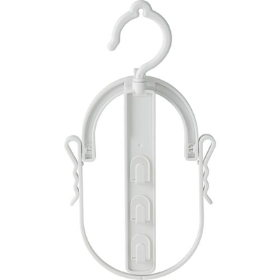 手持ちのハンガーをセットするだけ。360°回転します。子どもサイズにも対応。ニット帽やキャップ帽、雨で濡れたレインコートやタートルネックにも使用可能です。