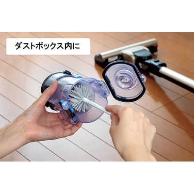 ホコリがたまる掃除機のダストボックス、やわらかいのにコシがあるブラシでキレイに。