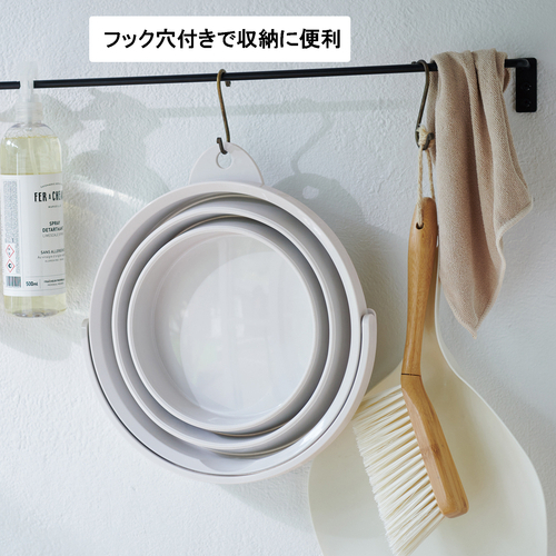 ●材質:熱可塑性エラストマー樹脂、ポリプロピレン●サイズ:30×32.8×高さ22.2cm(持ち手除く)収納時:高さ4.9cm●重量:504g●容量:8L●耐熱、耐冷温度(℃):100℃、-20℃●日本製