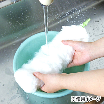 マイクロファイバーを使用したやわらかくモコモコしたハタキです。背の高い家具の上やすき間のホコリ取りに。洗って繰り返し使えるので経済的。