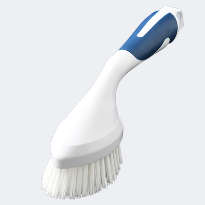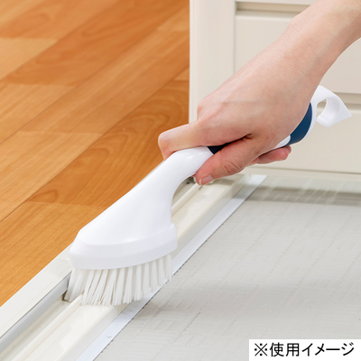 しっかり握れる形状なので、力を入れて擦りやすいブラシです。ほどよい硬さのブラシで汚れを落とします。三角ヘッドで端やすみまで届きます。しつこい汚れを落とすのに便利なスクレーパー付き。収納に便利なフック付き。
