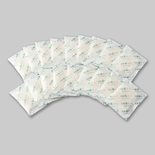 ●植物由来成分、ビーズ:セルロース、不織布●6×8×厚さ1cm(1個)●標準使用量:50Lに2個●有効期間:約6ヶ月(温度や使用状況、条件などで変わります。)●日本製*適応害虫:コイガ・ヒメカツオブシムシ