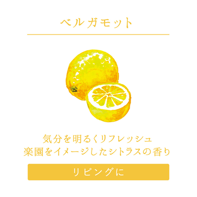 気分を晴れやかにするシトラスの香り。丸みのあるデザインは、安定感があり倒れにくくなっています。スティックは、国産の杉間伐材を使用。最後までしっかり香りが広がります。