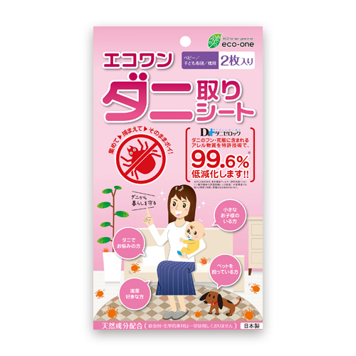 ダニアレルゲン99.6%低減化。天然成分配合、殺虫剤・化学的素材は一切使用していません。