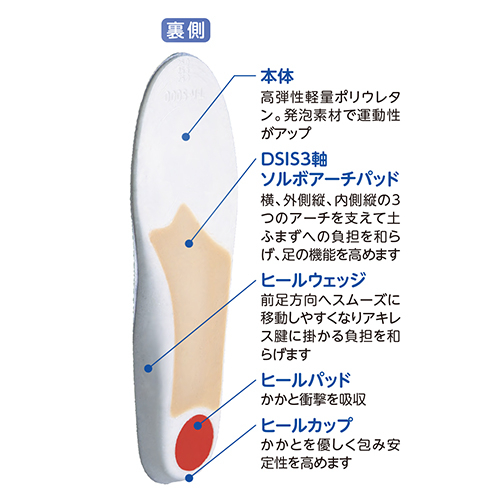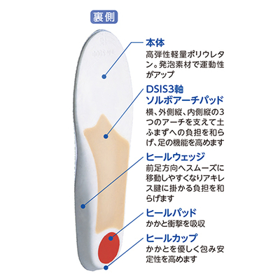 歩く時のフィット感と安定性が高まり、足や腰、ひざへの負担を軽減する中敷です。