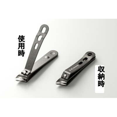 カーブした斜めの刃先がツメの間に入りやすい形状。こだわりの足専用つめきりです。手の爪も切れます。