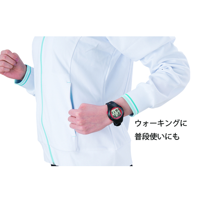 ●材質:本体/ABS樹脂、透明部/アクリル、裏蓋/ステンレス、バンド/強化ポリウレタン●サイズ:4.3×4.9×1.37cm(バンド含まず)●重量:39g(バンド・電池含む)●日本国内専用●使用温度範囲:0℃〜40℃●歩数精度:±3%以内●使用電池:CR2032リチウム電池1個●電池寿命:約1年(1日1万歩使用、電波受信1日1回にて)●3気圧防水(日常生活防水)●適応サイズ:手首周り/14.5〜2