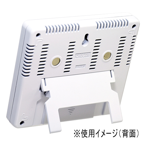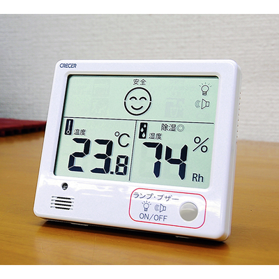 夏場の熱中症予防の目安、冬場の季節性インフルエンザ予防の目安におすすめです。音と光は切り替えボタンでON/OFFが可能。卓上・壁掛けのほか、裏面マグネット付なのでスチール面に設置できます。