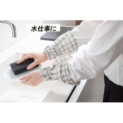 2段のゴムでずれ落ちしにくい構造。お料理やお掃除、ガーデニングやDIY様々なシーンで使えるアームカバーです。