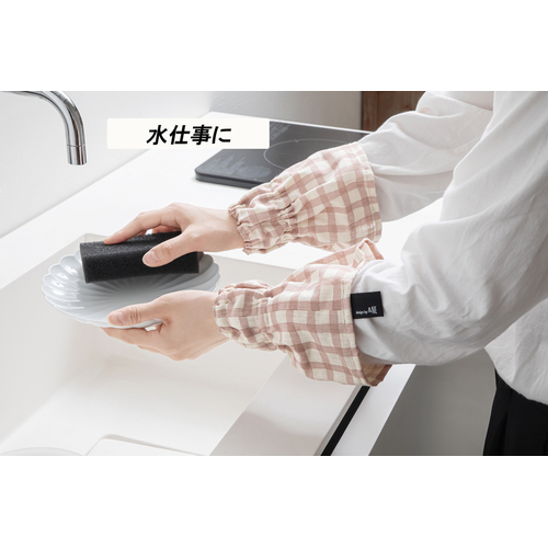 2段のゴムでずれ落ちしにくい構造。お料理やお掃除、ガーデニングやDIY様々なシーンで使えるアームカバーです。