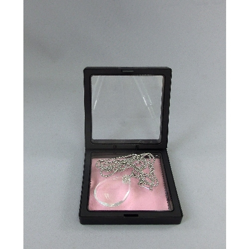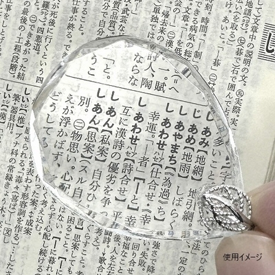 ●ルーペ:ホワイトガラス、ネックレス:真鍮(クロムメッキ)、ケース:枠PP・透明フィルムPE●ペンダント:幅4×奥行3×厚さ0.5cm、ネックレスチェーン長さ80cm●20g●拡大率4.0倍●クリーナーとケース付●中国製