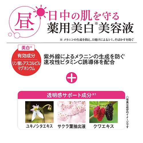 日中の肌を守る薬用美白※美容液※メラニンの生成を抑え、日焼けによるシミ、そばかすを防ぐ