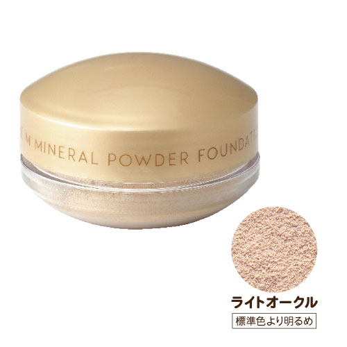 天然ミネラル成分に保湿成分を配合したパウダーファンデーションです。下地不要で、軽い着け心地ながら適度なカバー力があります。クレンジング剤不要で、せっけんで落とすことができます。色味は標準よりやや明るめのライトオークルです。