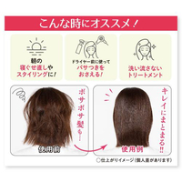 ・オイル層とウォーター層をシェイクして使う2層式トリートメントミストです。・寝ぐせ直しやスタイリング、洗い流さないトリートメントとしてもオススメです。