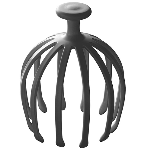 頭のツボを、12本のアームでほどよくホールドし、指圧感覚で刺激します。入浴時にも使え、頭にかぶせて上下に動かせば、ヘッドスパ気分に。