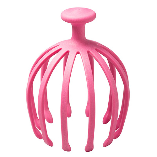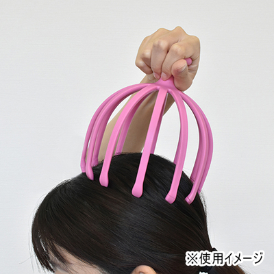 頭のツボを、12本のアームでほどよくホールドし、指圧感覚で刺激します。入浴時にも使え、頭にかぶせて上下に動かせば、ヘッドスパ気分に。