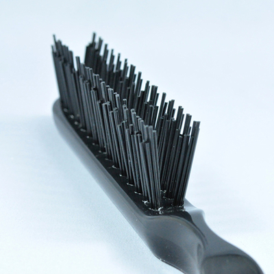 プロの美容師さんが愛用する、ヘアーブラシのお手入れ用ブラシ。からみついた毛やホコリをラクにきれいに取り除けます。