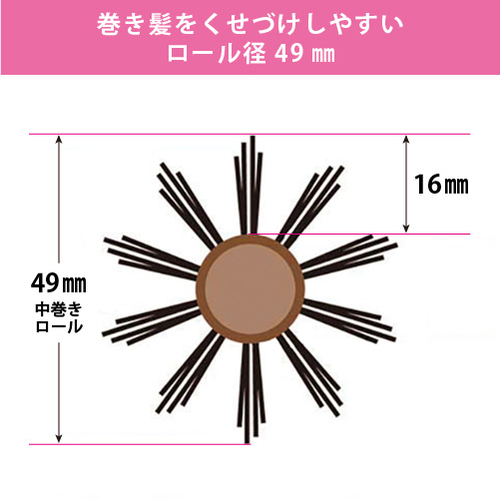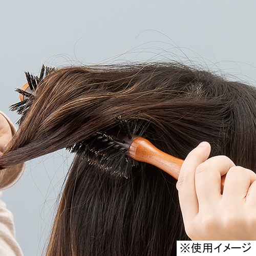 毛腰の強い天然毛をずらして植毛しているので髪の毛が絡まりにくくブローしやすいブラシです。根元の立ち上げがしやすく、キレイなカールを作ります。