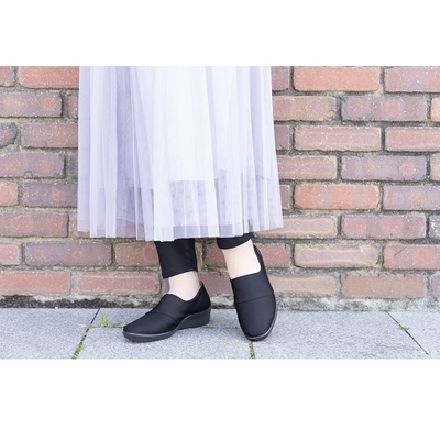 アッパー:ポリエステル、底:合成底(ポリウレタン+ラバー)足囲:3E 踵高さ:5cm 重量:230g(23.5㎝片足)日本製 ※ポリウレタン底について注意:ポリウレタン底は経年変化により劣化する事があります長期保管はお避けください。