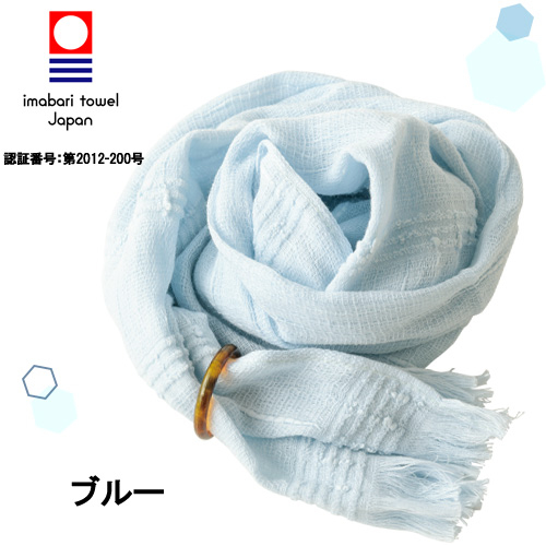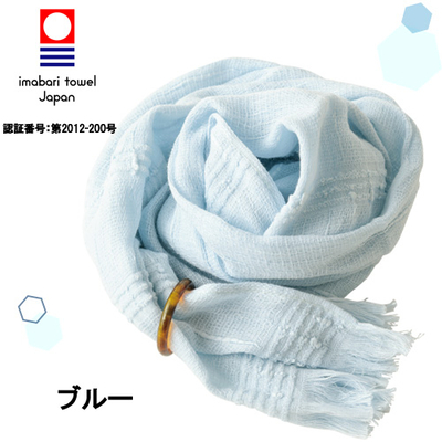 国産タオルの産地として知られる愛媛県今治で作られたタオルマフラーです。吸水性もよく、お洗濯もできるの汗拭きタオルとしても使えます。便利なリング付きで、様々スタイリングで楽しめます。