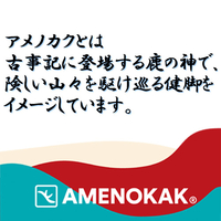 奈良県の国産靴下メーカーと近畿大学が共同で企画した靴下です。特許技術の衝撃緩和機能で、足の負担を軽減します。スポーツや散歩を楽しむ方はもちろん、立ち仕事の方へにもおススメです。アメノカクとは古事記に登場する鹿の神で、険しい山々を駆け巡る健脚の持ち主です。くるぶしから足首のグラデーションデザインは、山をイメージしました。